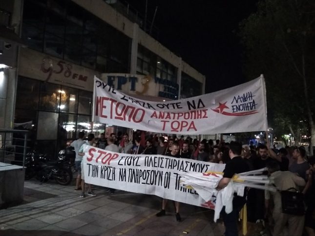 Κατά την αποχώρηση από την πορεία της ΔΕΘ, μεγάλη ομάδα από το μπλοκ της ΛΑ.Ε, με επικεφαλής τους Τάσο Κανταρα, Χριστίνα Σουλτανίδου, Πέτρο Γκότση και Ράνια Μαρμάρη,μπήκε αιφνιδίως και κατέλαβε τον ραδιοφωνικό σταθμό της ΕΡΤ3, όπου απεύθυνε μέσα από το ραδιόφωνο μήνυμα στους Έλληνες πολίτες. Το μήνυμα περίπου ήταν το εξής: